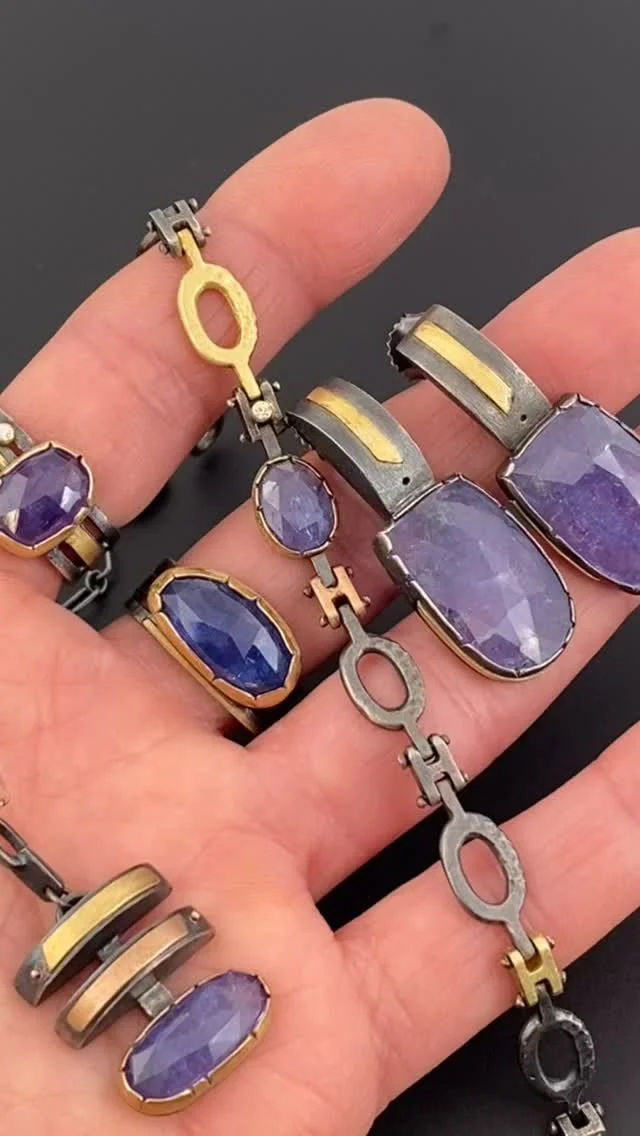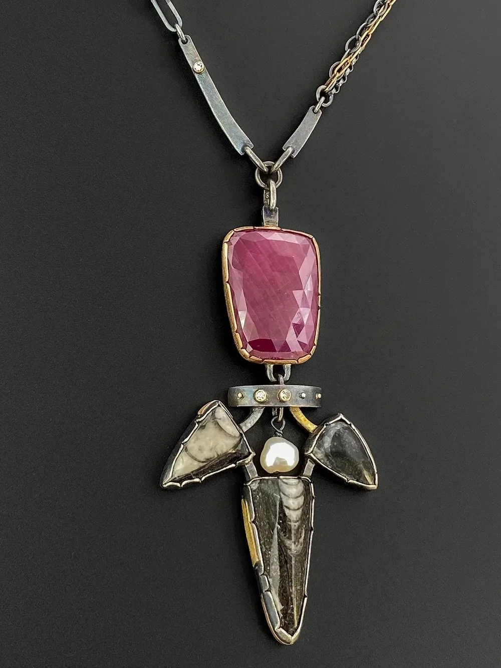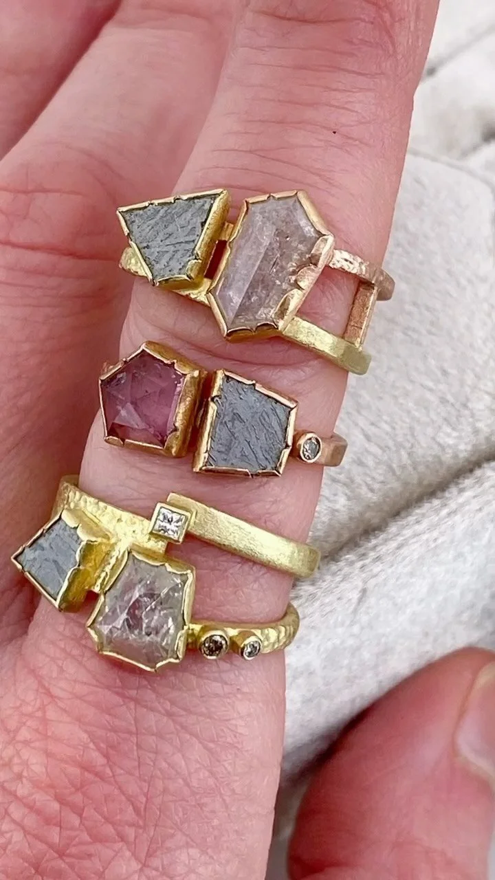 Janine combines ancient materials such as fossils, coral, and meteorites with fine gems, transforming them into modern heirlooms. Each piece is crafted using sterling silver, 14k rose gold, and 18k yellow gold.