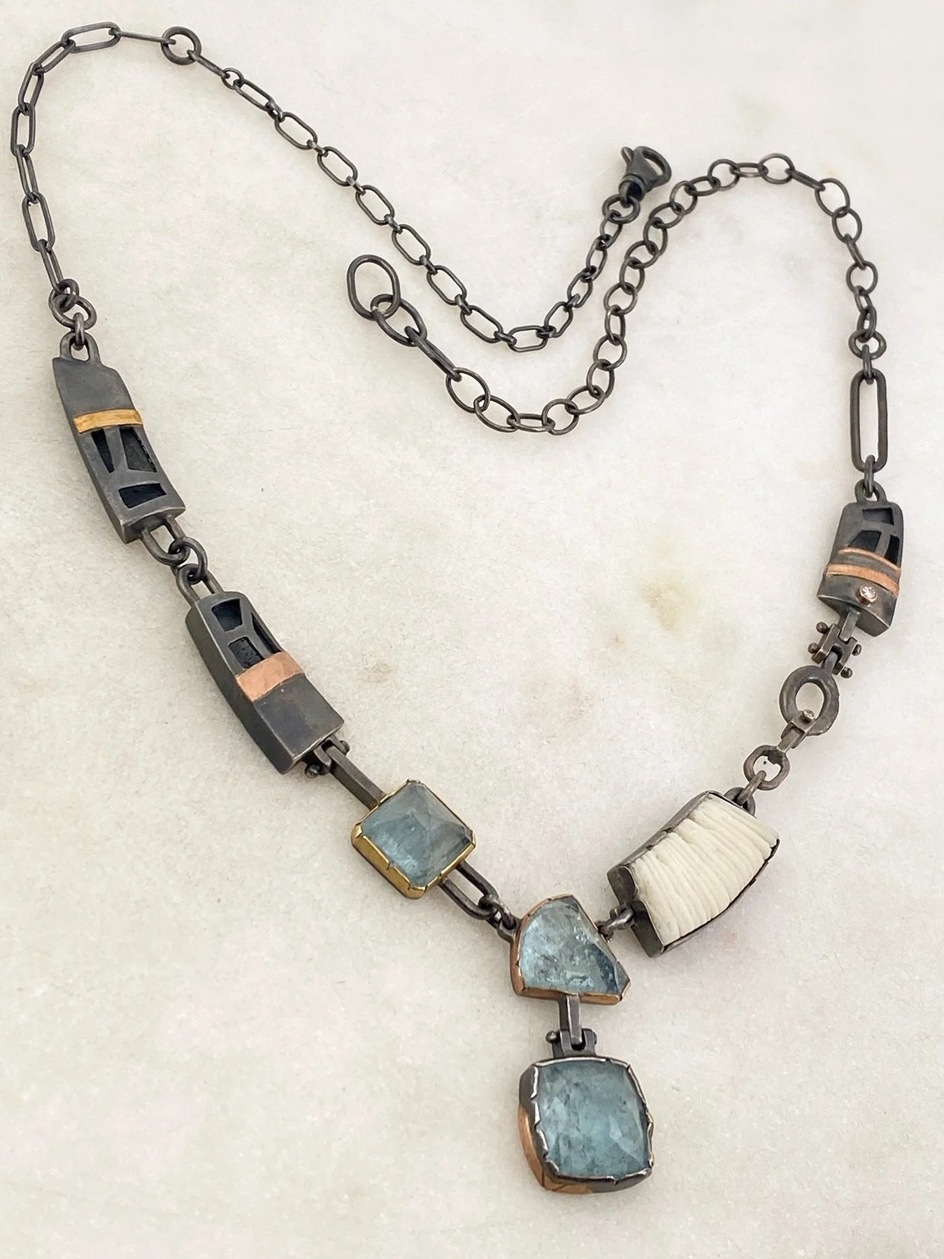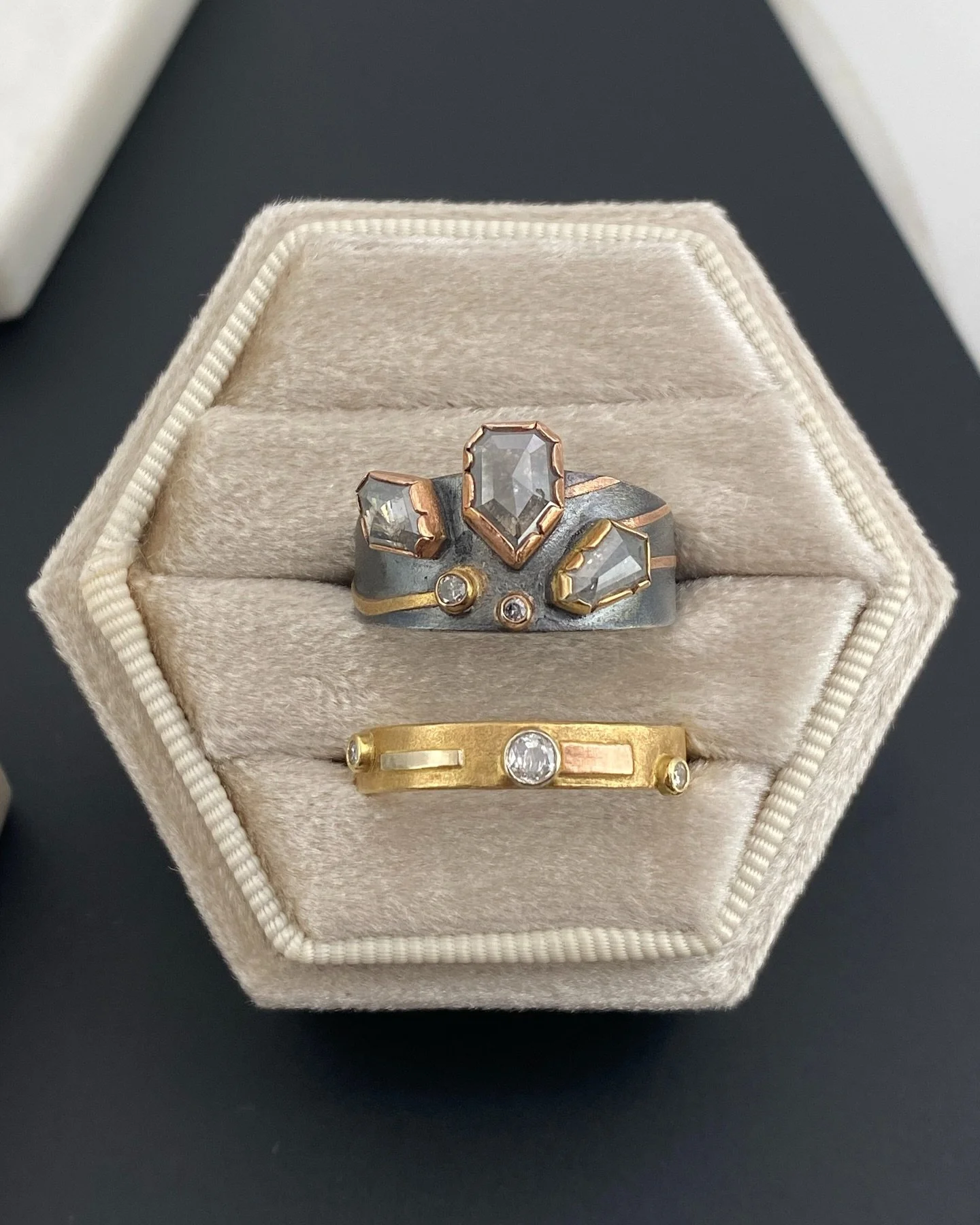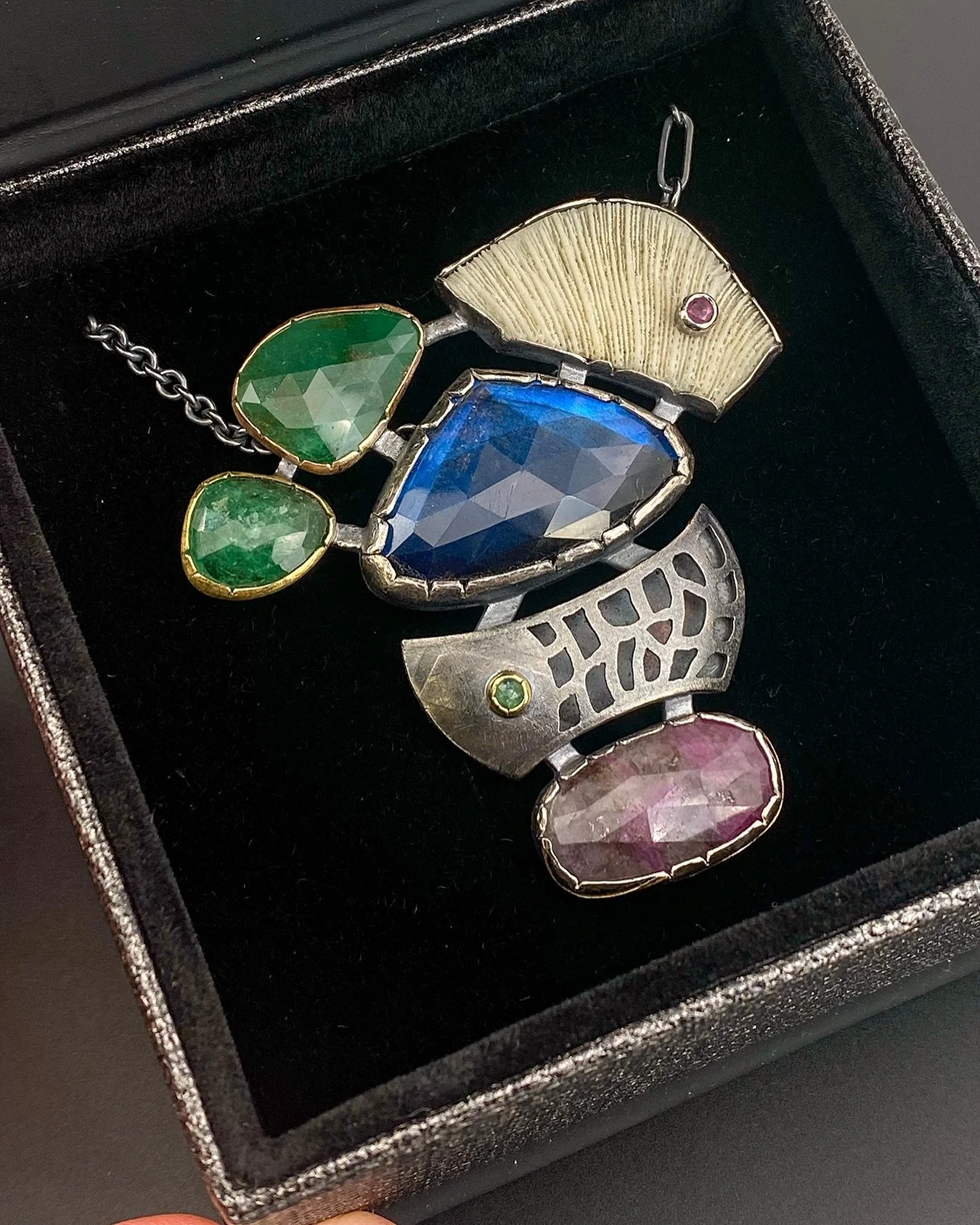 Janine combines ancient materials such as fossils, coral, and meteorites with fine gems, transforming them into modern heirlooms. Each piece is crafted using sterling silver, 14k rose gold, and 18k yellow gold.