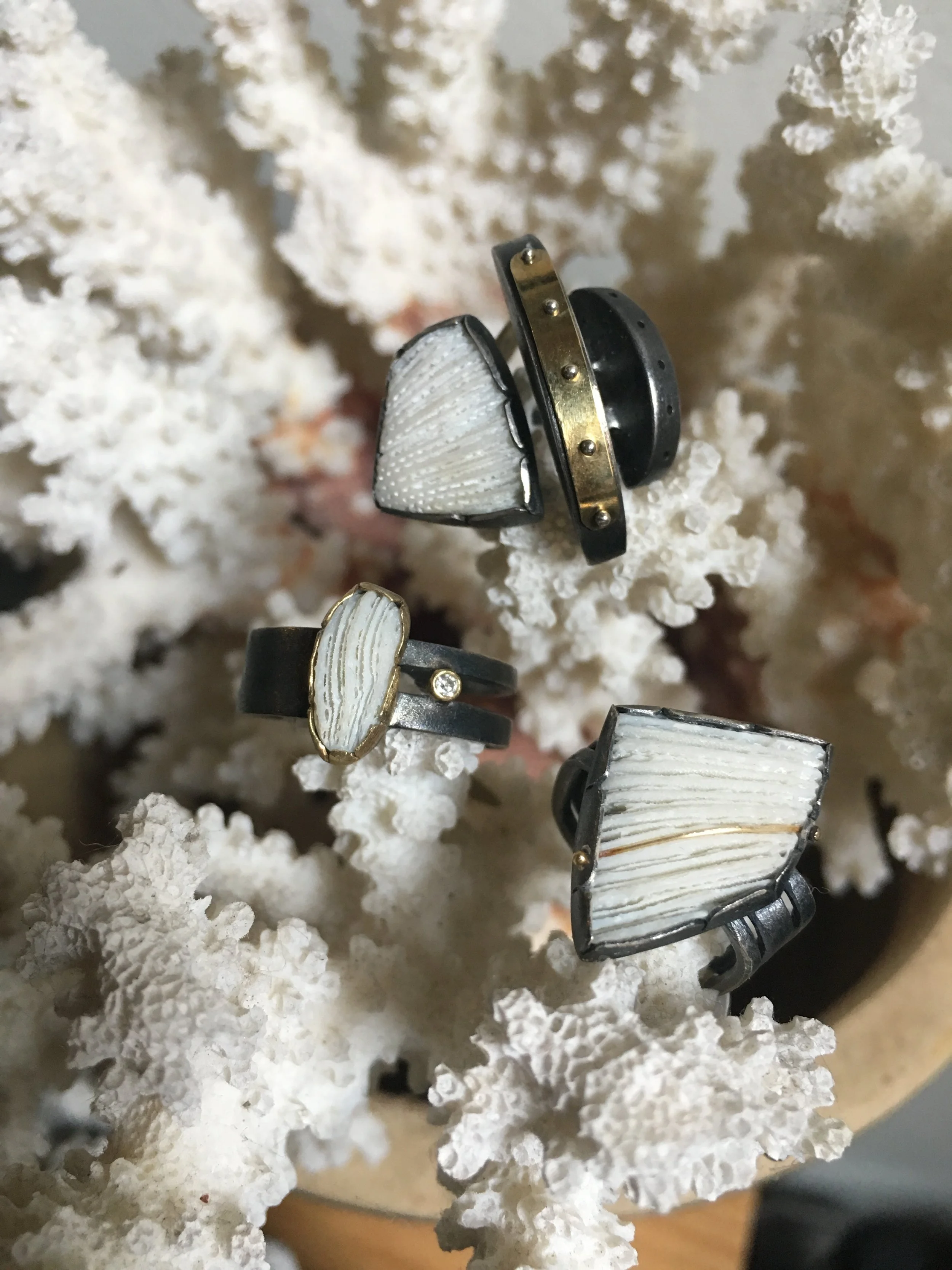 Metals I work with: Sterling Silver, 14K Rose Gold, 18K Yellow Gold, 18k White Gold and Palladium.